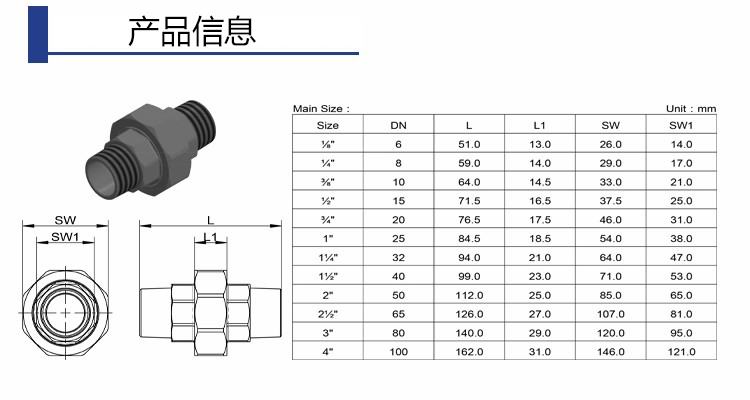 | 不鏽鋼雙頭(tou)外牙活接管件 | |